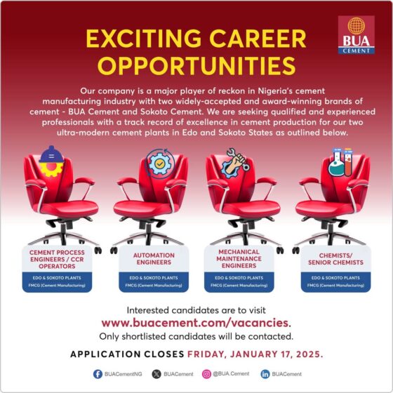 The post Job Alert : Massive Vacancies needed in BUA cement appeared first on Advert By Dotifi .Com Domains for Advert By Dotifi .Com Domains for almajiri.com.ng Hausa Music Blog, Entertainment ,News and Gossips .
