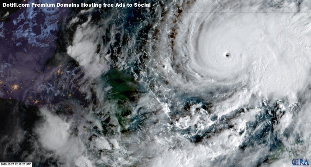 This RAMMB/CIRA handout satellite image shows Hurricane Melissa southeast of Jamaica at 12:10 UTC on October 27, 2025. Photo by RAMMB/CIRA/AFP