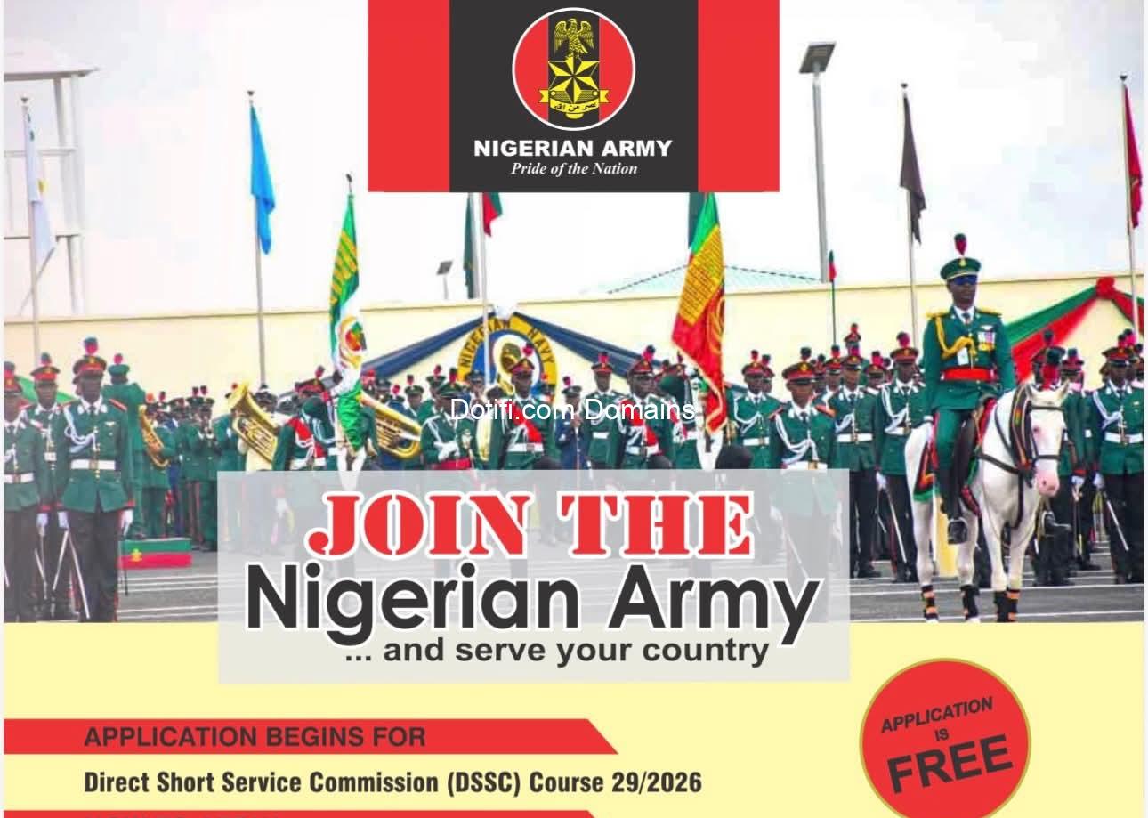 The post Apply Now : Nigerian Army Direct Short Service Commission (DSSC) 29/2026 appeared first on Advert By Dotifi .Com Domains for almajiri.com.ng | Best African Hausa Music Blog, Entertainment ,News and Gossips .