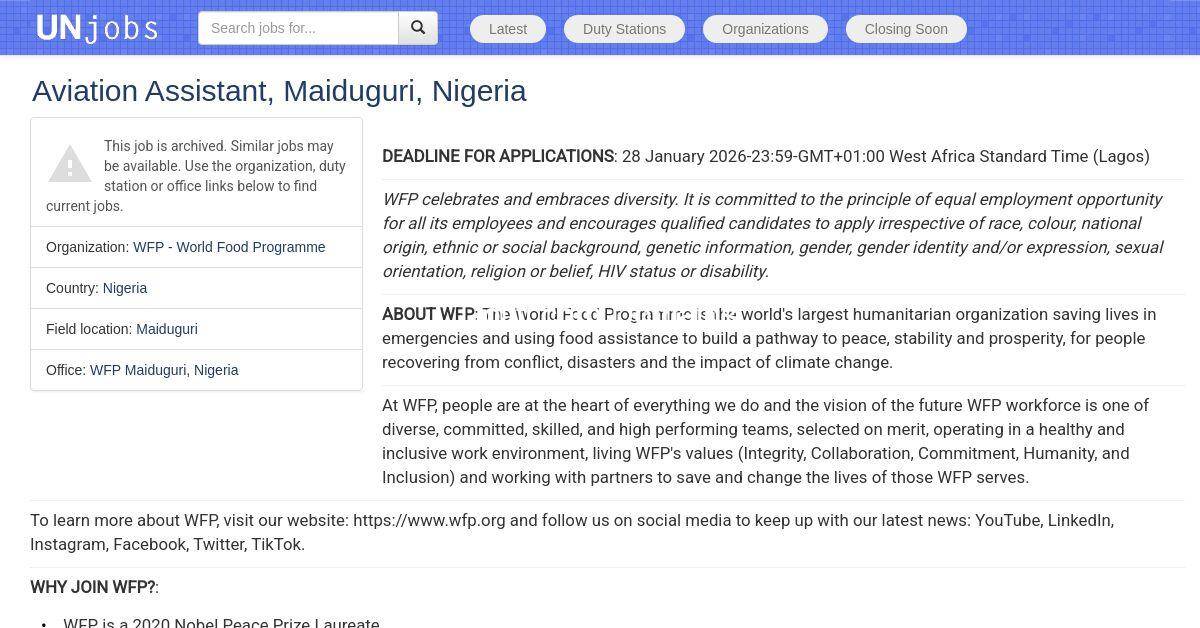 The post Aviation Assistant SC5, Maiduguri at World Food Programme ( WFP) appeared first on Advert By Dotifi .Com Domains for almajiri.com.ng | Best African Hausa Music Blog, Entertainment ,News and Gossips .