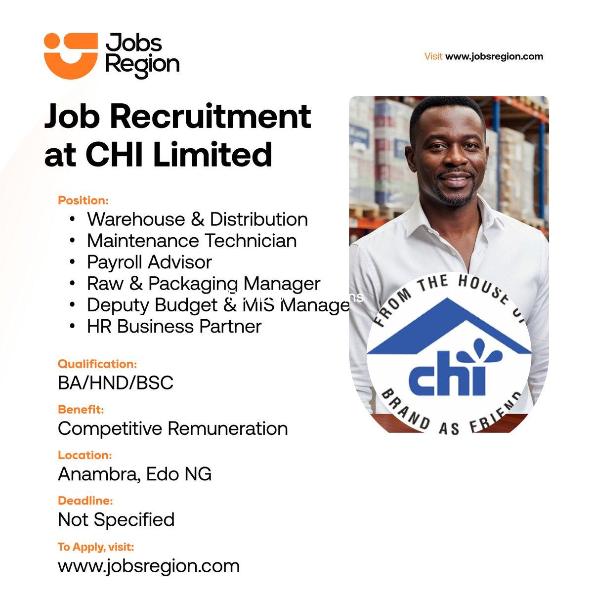 The post Raw and Packaging Material (RM/PM) Warehouse Manager at CHI Limited appeared first on Advert By Dotifi .Com Domains for almajiri.com.ng | Best African Hausa Music Blog, Entertainment ,News and Gossips .