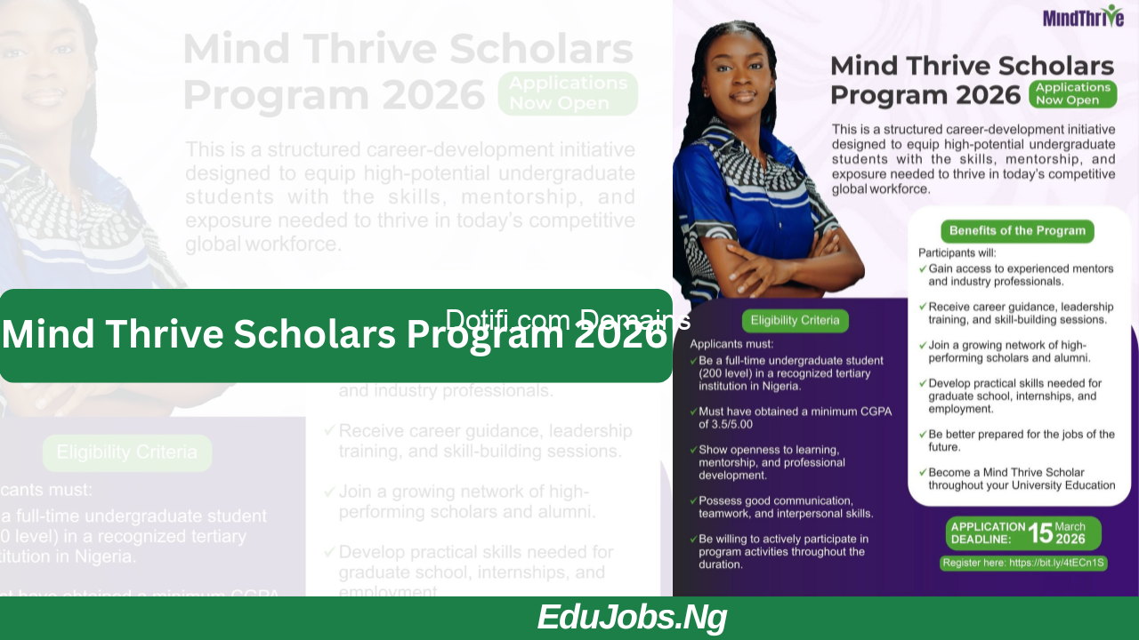 The post Apply Now: Mind Thrive Scholars Program 2026 appeared first on Advert By Dotifi .Com Domains for almajiri.com.ng | Best African Hausa Music Blog, Entertainment ,News and Gossips .