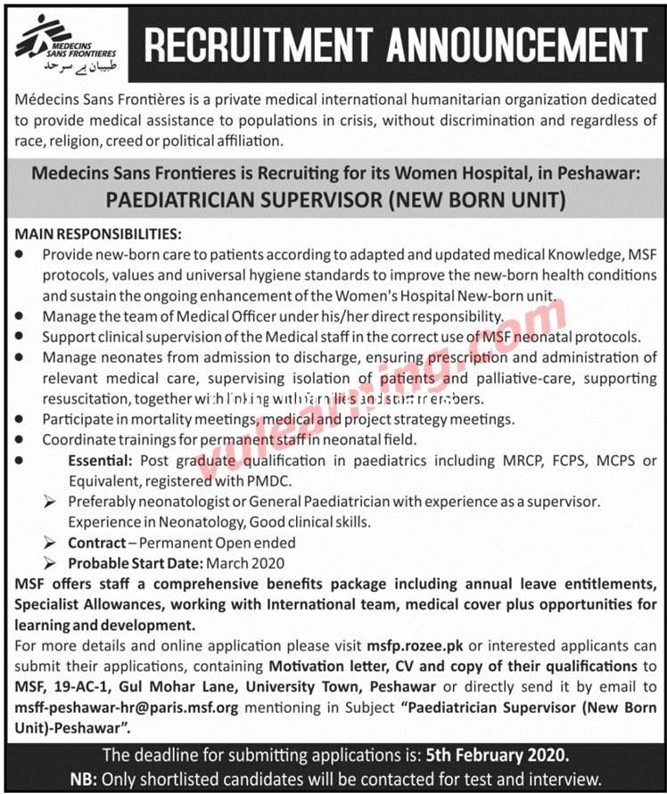 - MSF is an equal opportunity employer, both men and women are encouraged to apply.